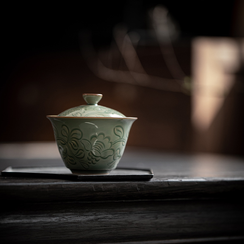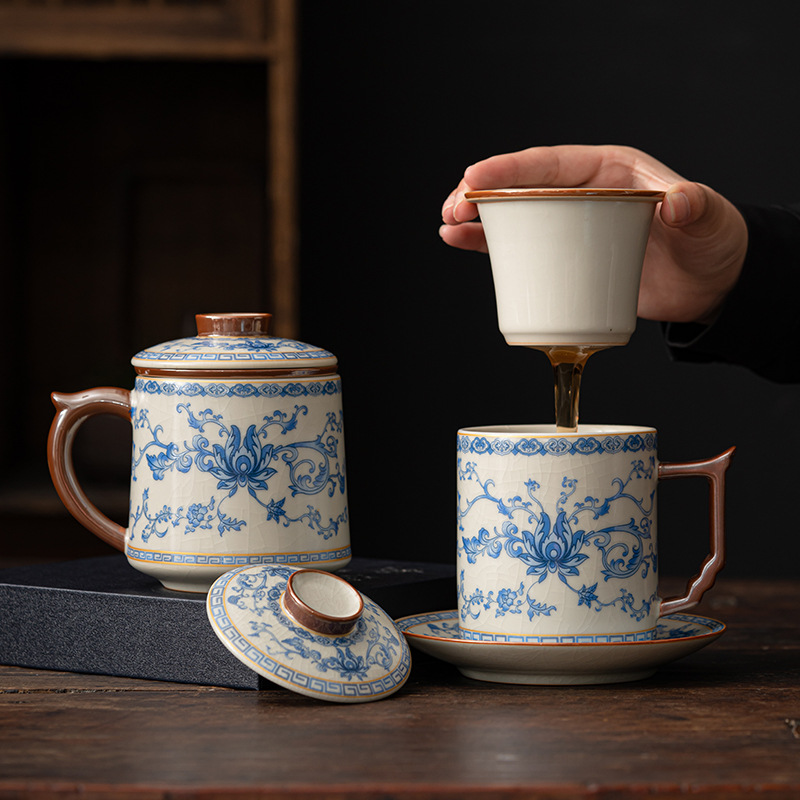 汝窯青花纏枝蓮西施壺蓋碗茶具套裝