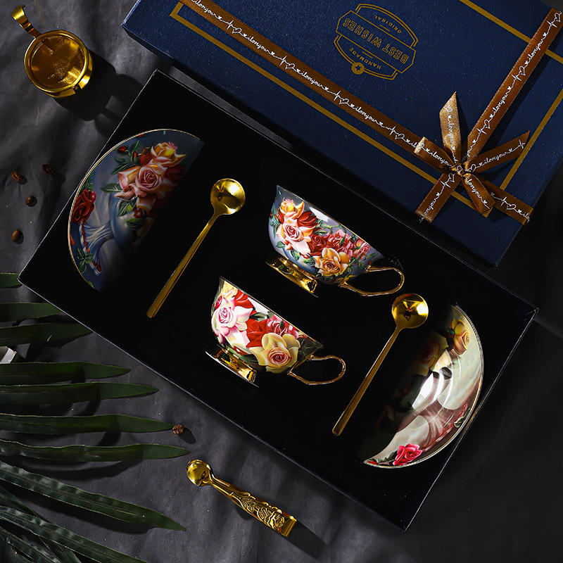 玫瑰歐式骨瓷咖啡杯杯碟套裝