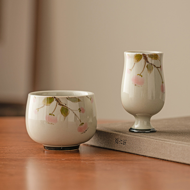 草木灰手繪石榴茶杯陶瓷品茗杯