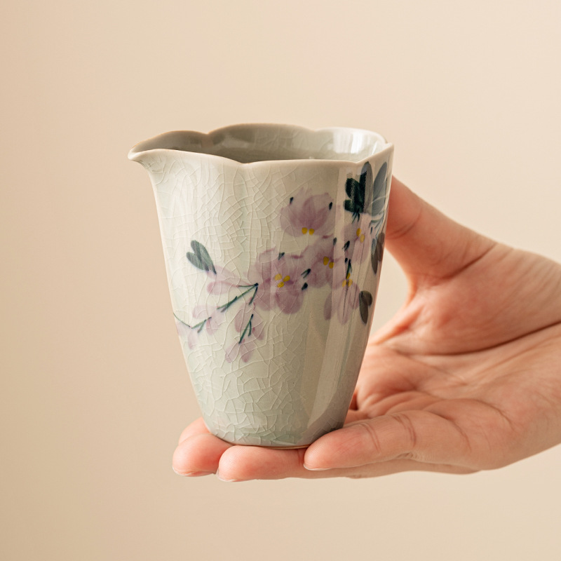手繪竹子釉下彩帶蓋玻璃泡茶杯