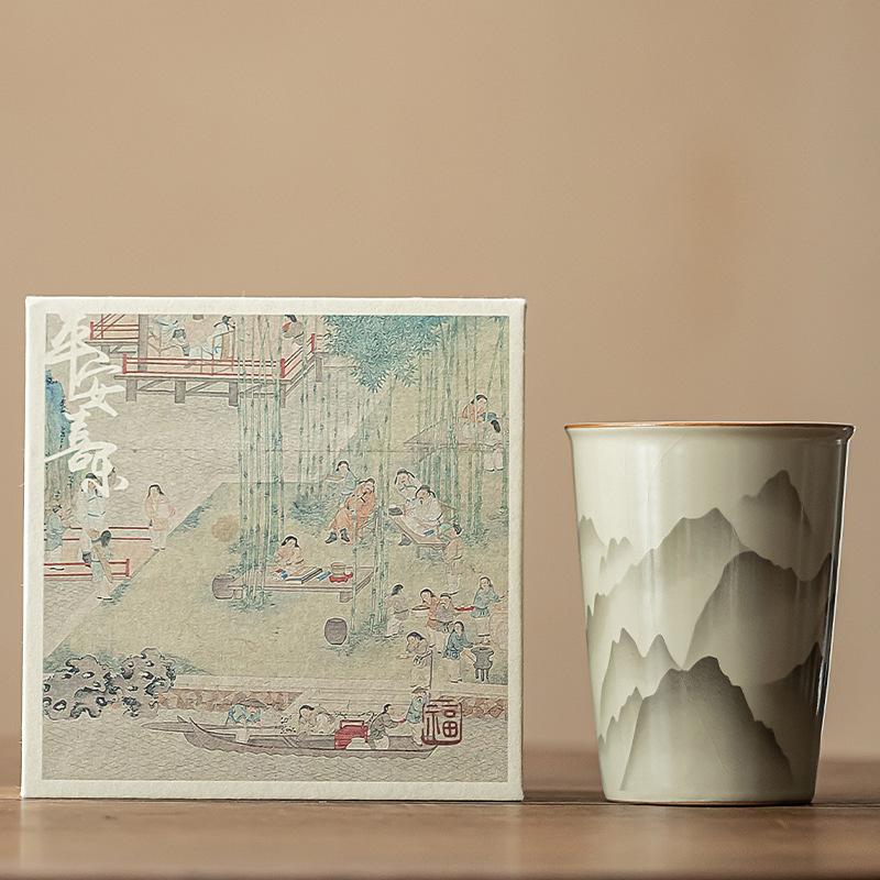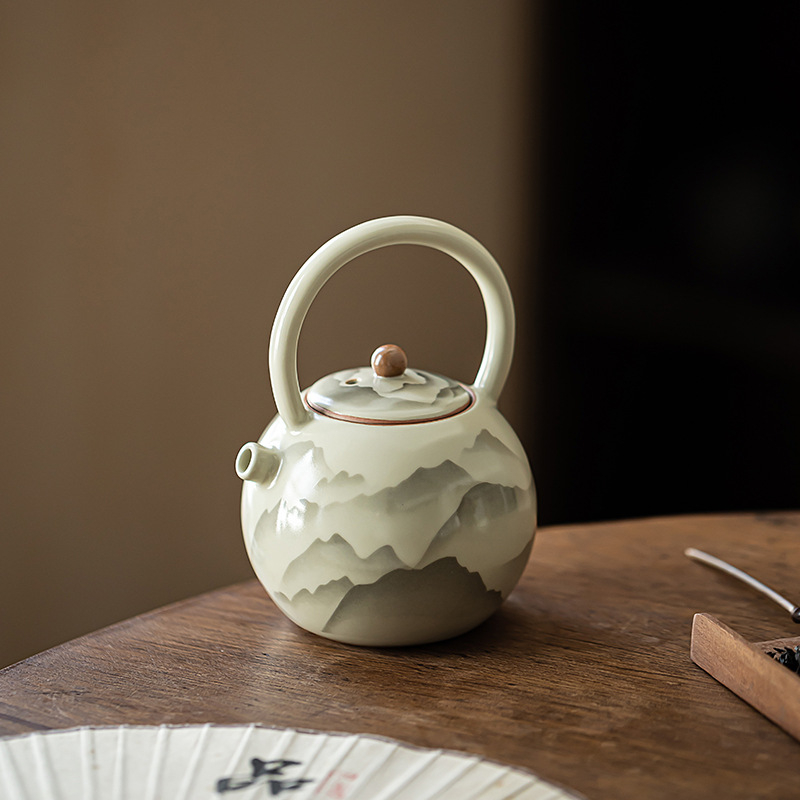 Mutton fat jade ink wash distant mountain white porcelain xishi teapot