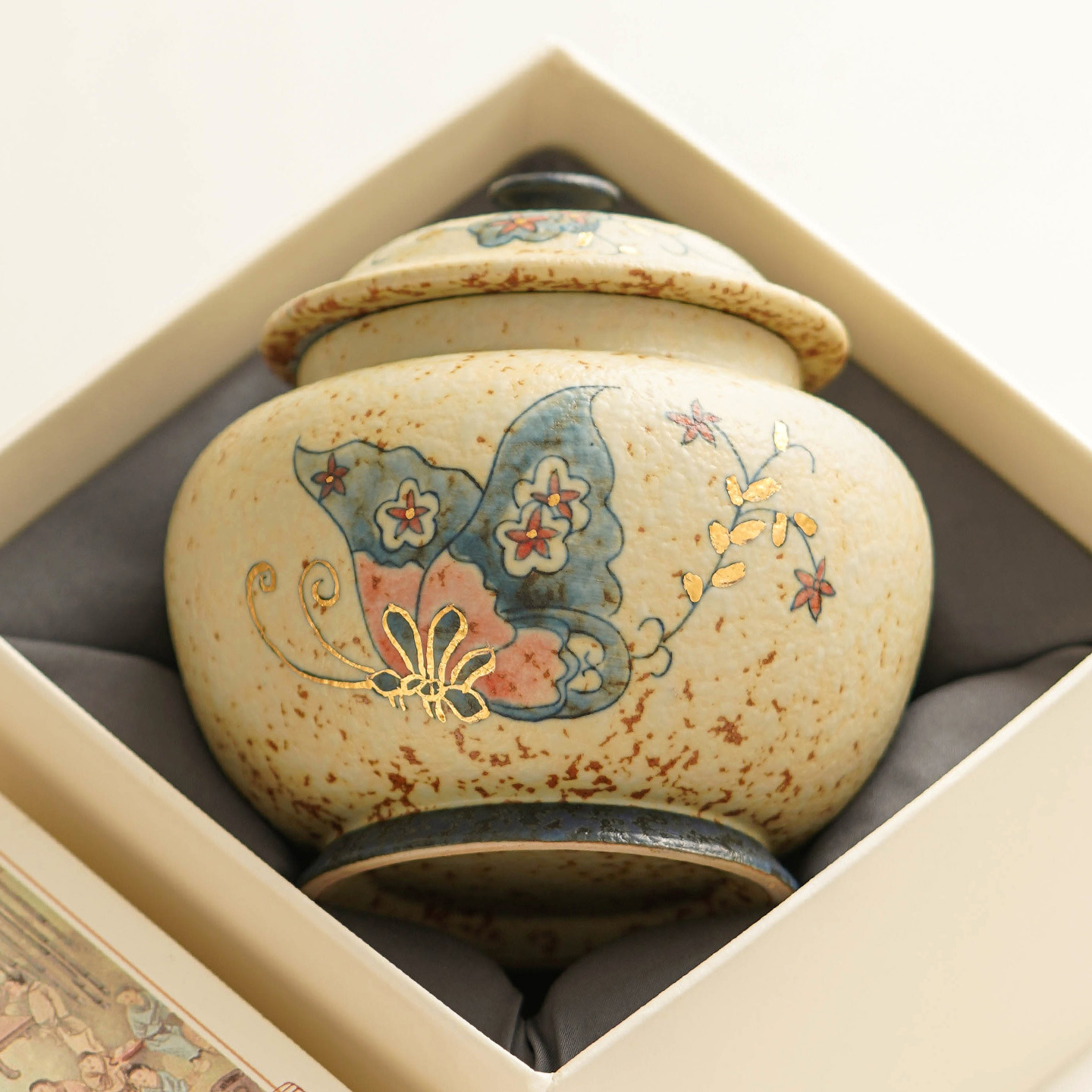 越窑龙泉青瓷四方海棠茶叶罐