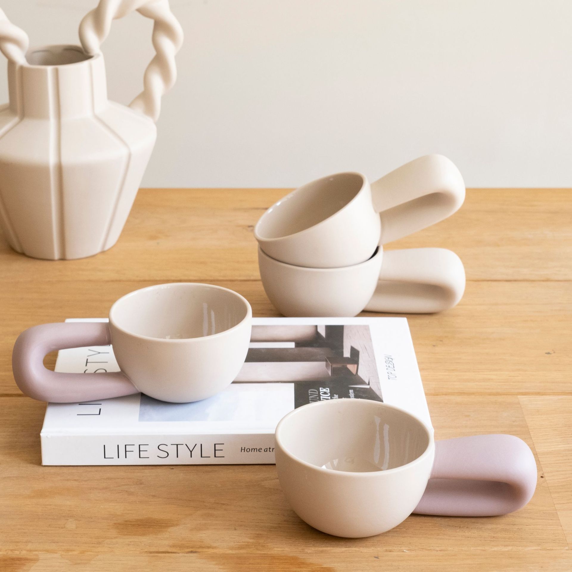 Creative ceramic coffee cup with large handle