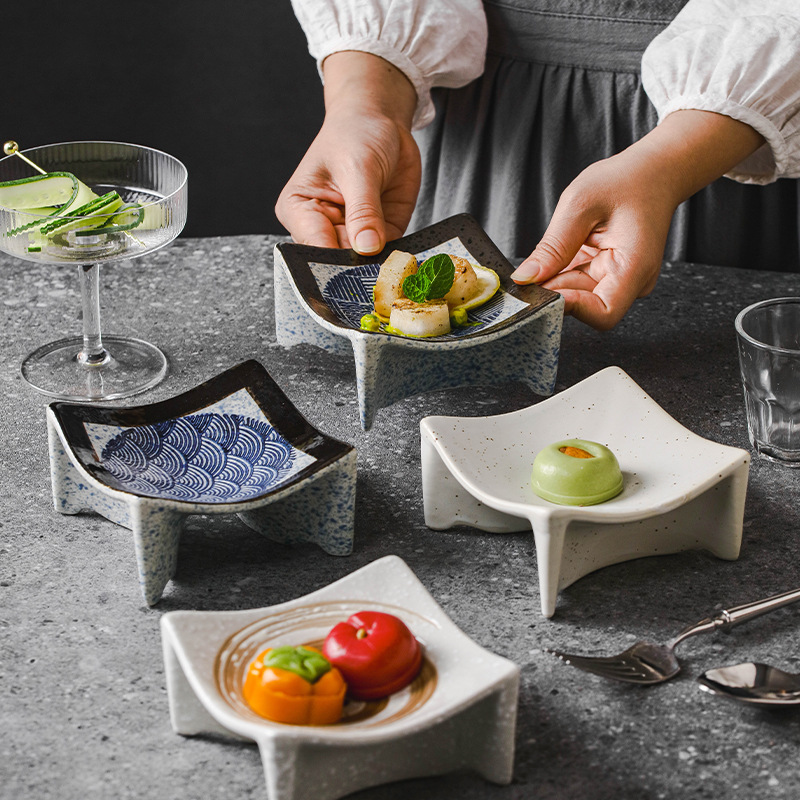 日式陶瓷輕奢復古創意四方小吃碟