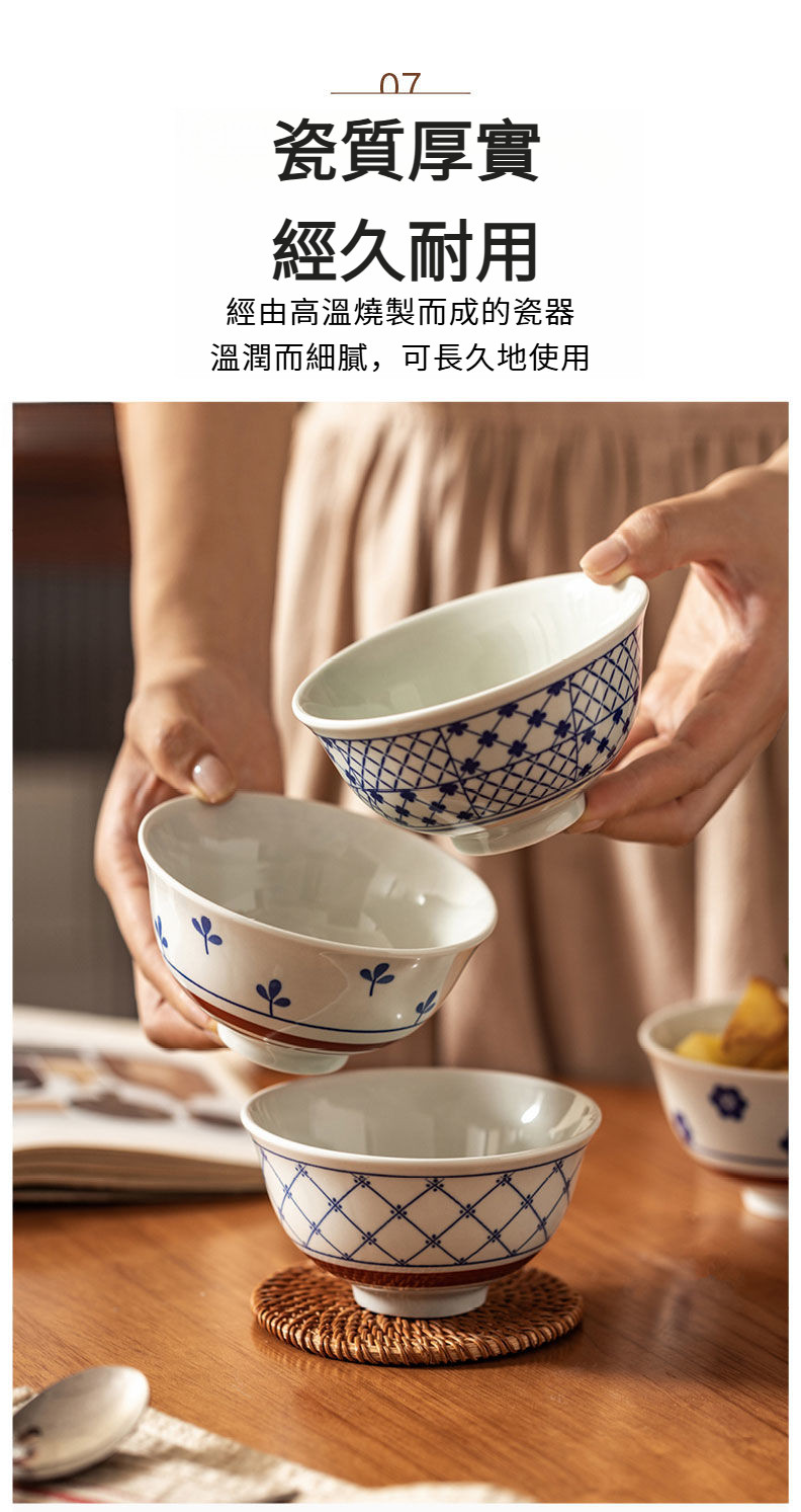 日式家用釉下彩復古斗笠碗米飯碗 日式家用釉下彩復古斗笠碗米飯碗
