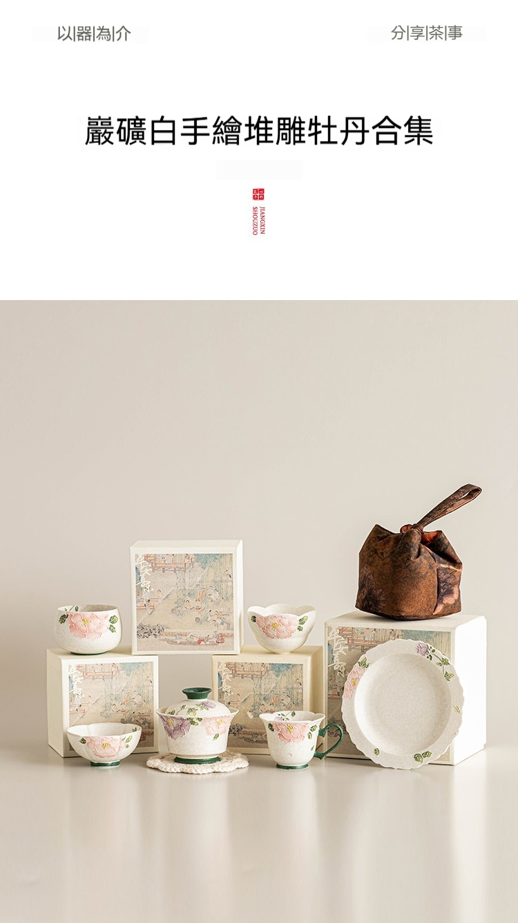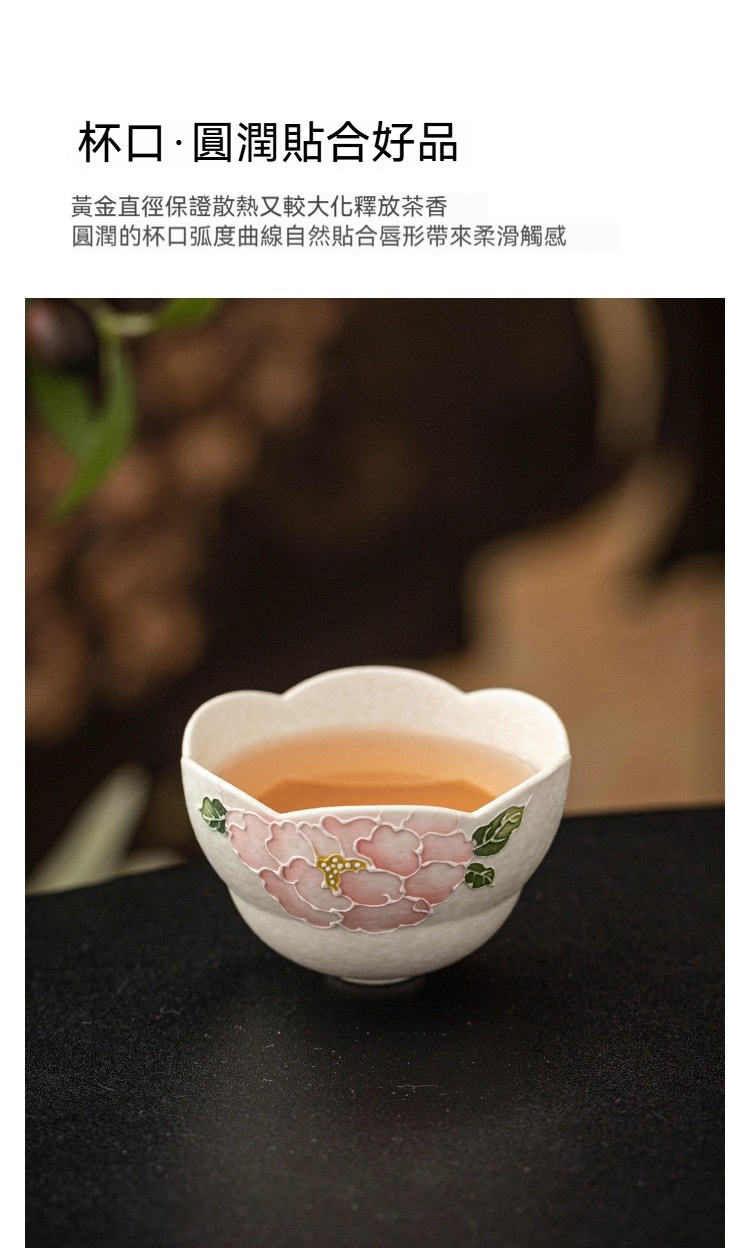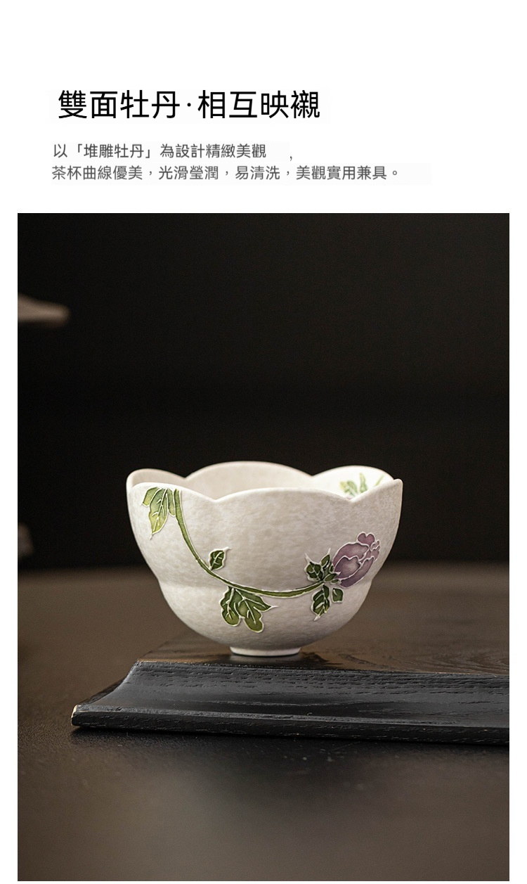 牡丹堆雕茶盞茶杯 牡丹堆雕茶盞茶杯