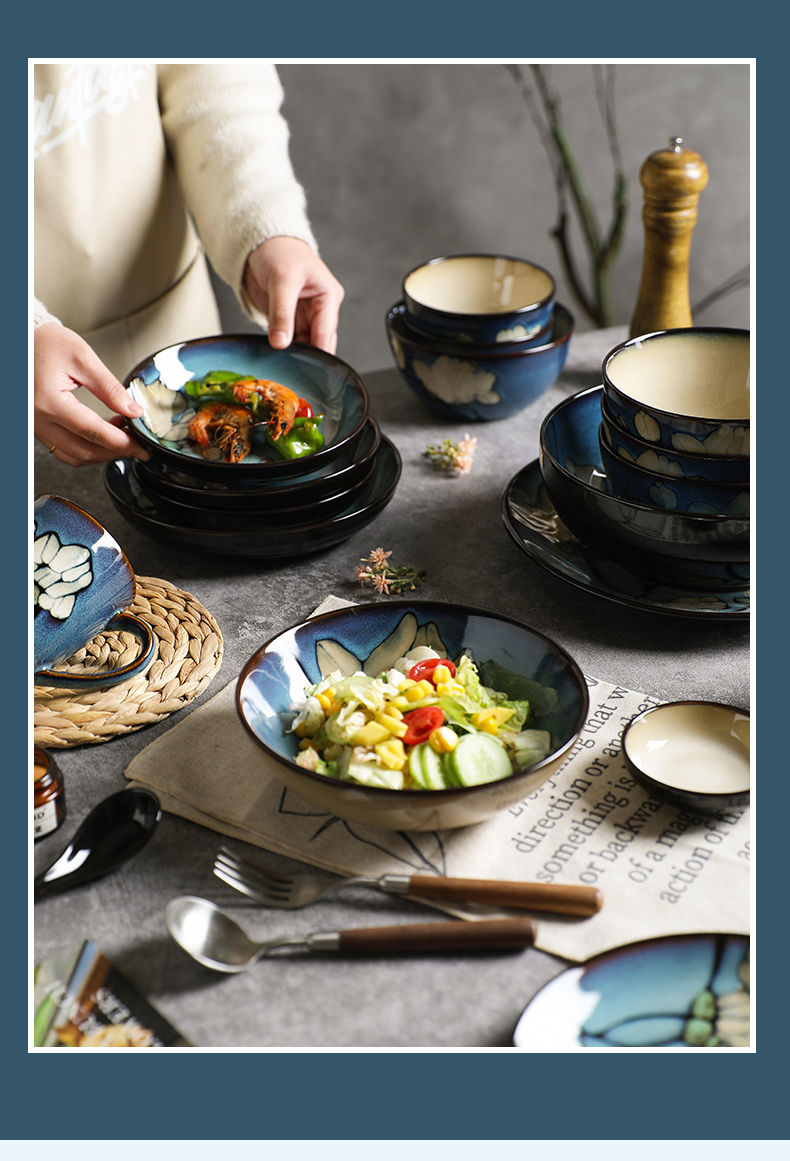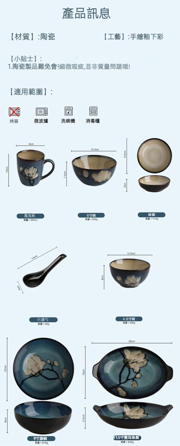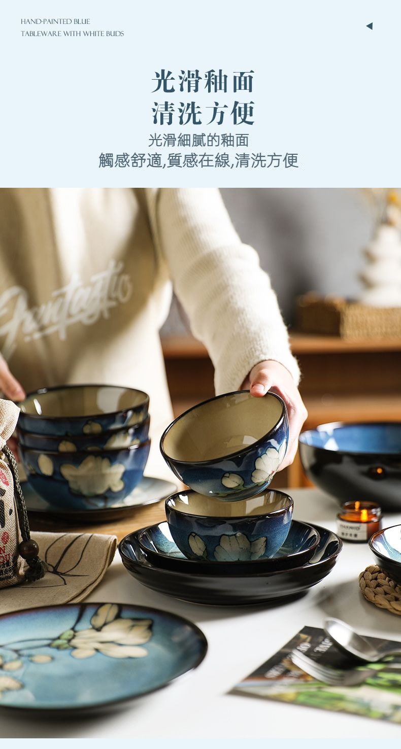 玉蘭花陶瓷餐具釉下彩飯碗湯碗套裝 玉蘭花陶瓷餐具釉下彩飯碗湯碗套裝