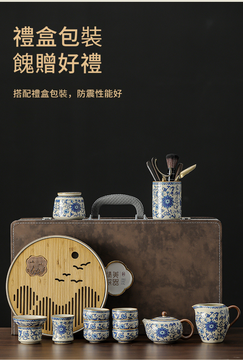 青花纏枝蓮高檔輕奢汝窯茶具套裝 青花纏枝蓮高檔輕奢汝窯茶具套裝