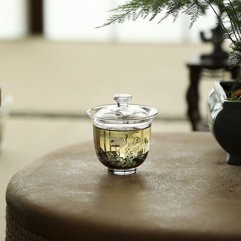 松鶴高硼硅玻璃小蓋碗