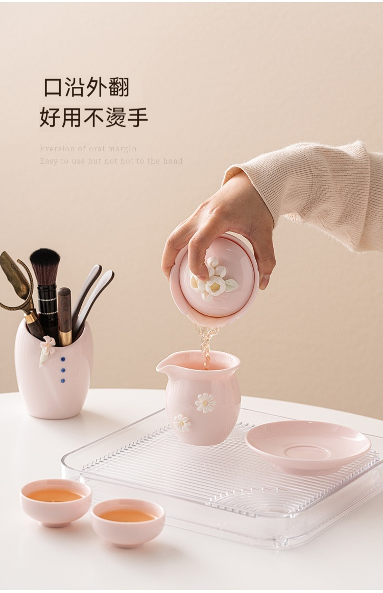 桃粉捏花_簡雅二才蓋碗+花口壺承