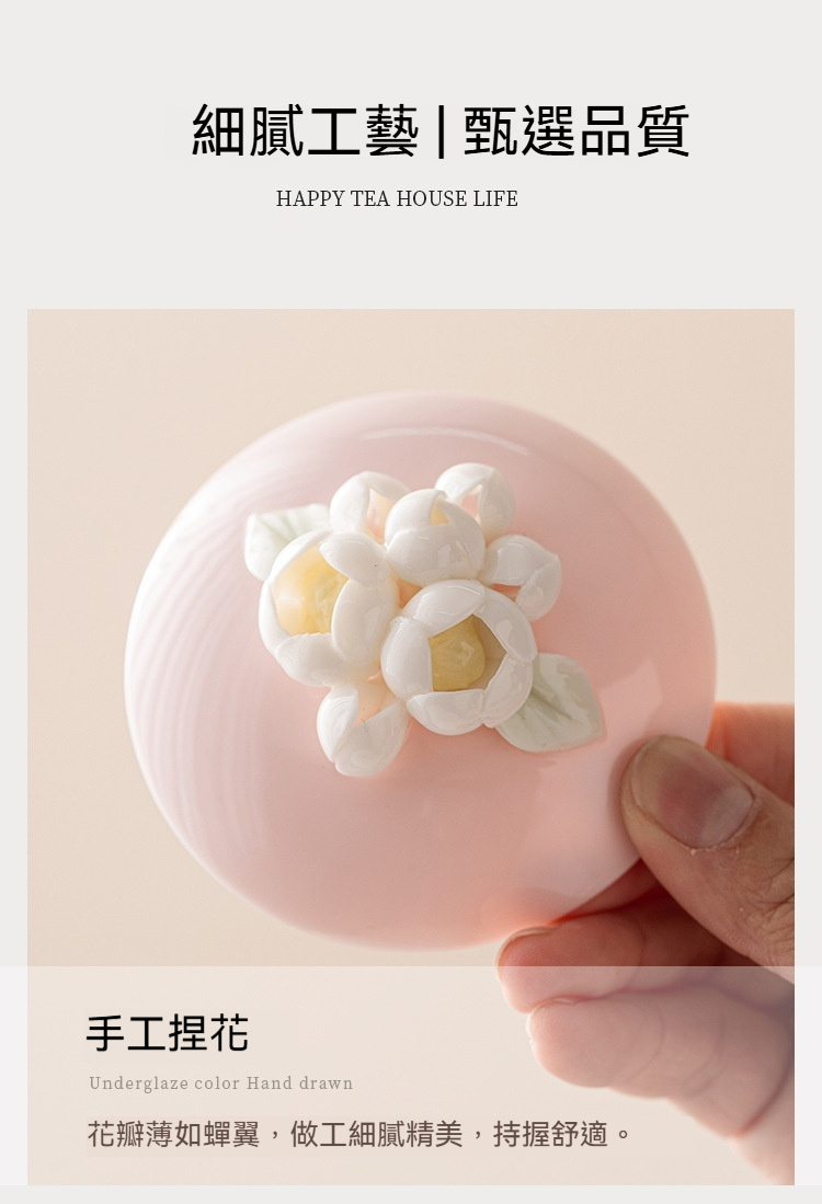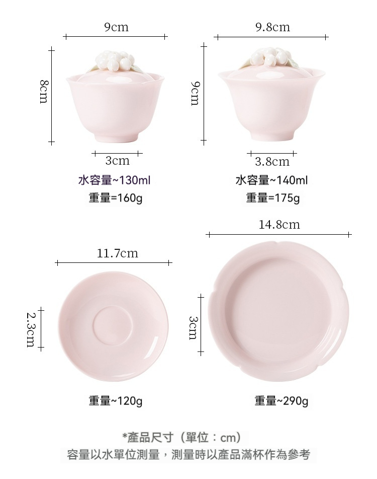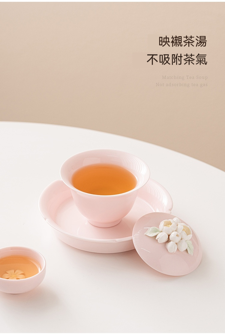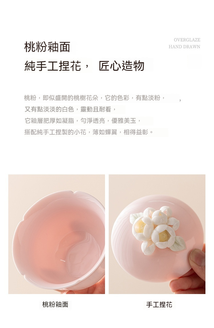 桃粉捏花_簡雅三才蓋碗