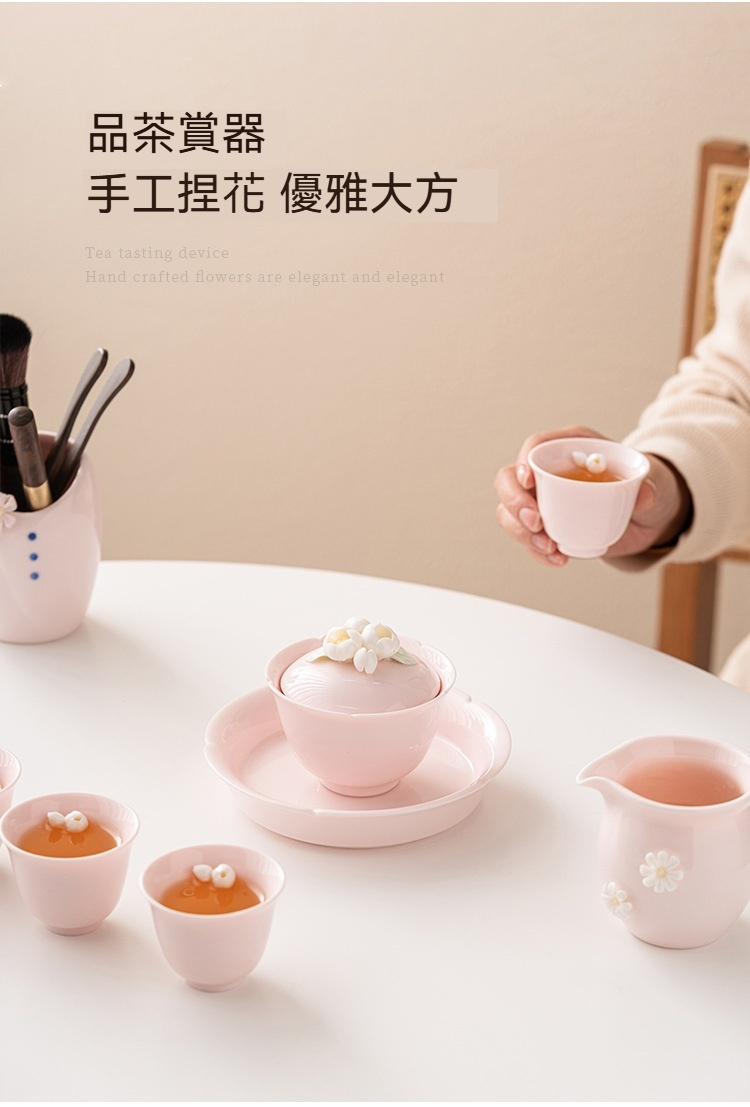 桃粉捏花三才蓋碗茶杯 桃粉捏花三才蓋碗茶杯