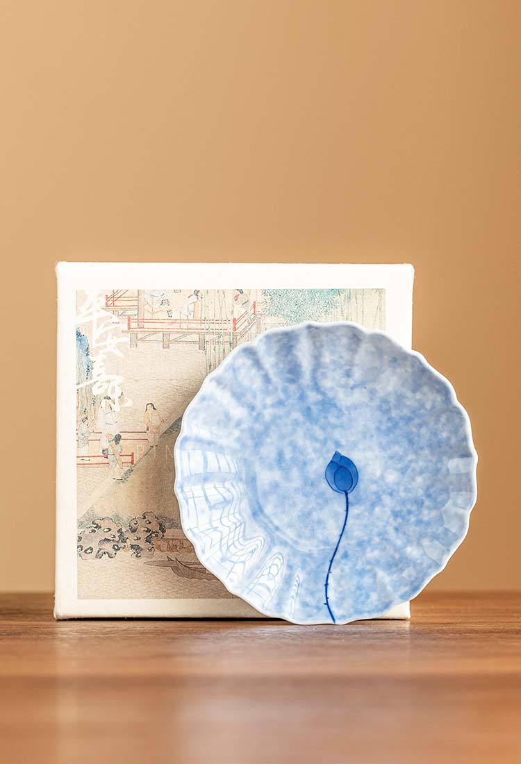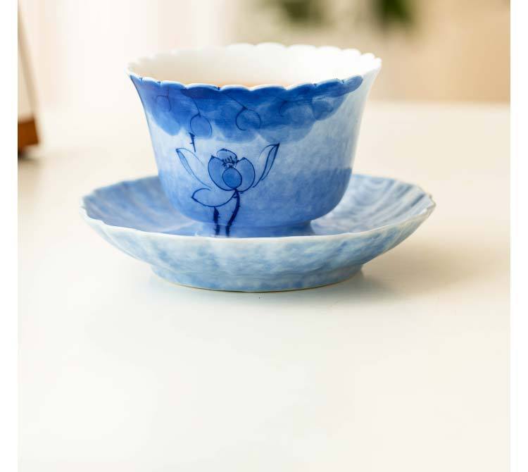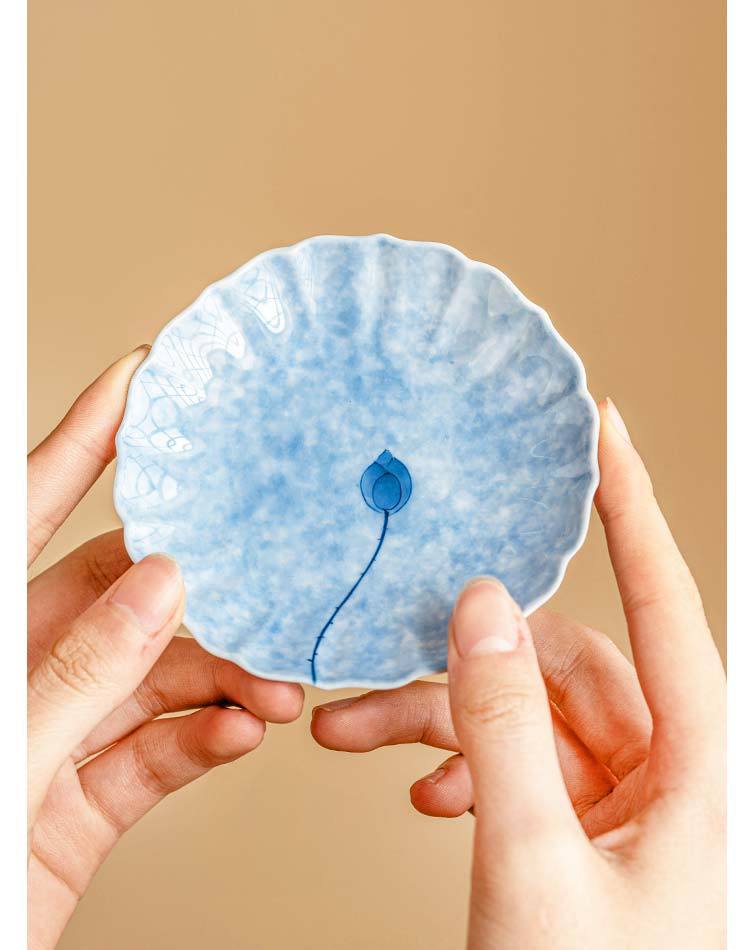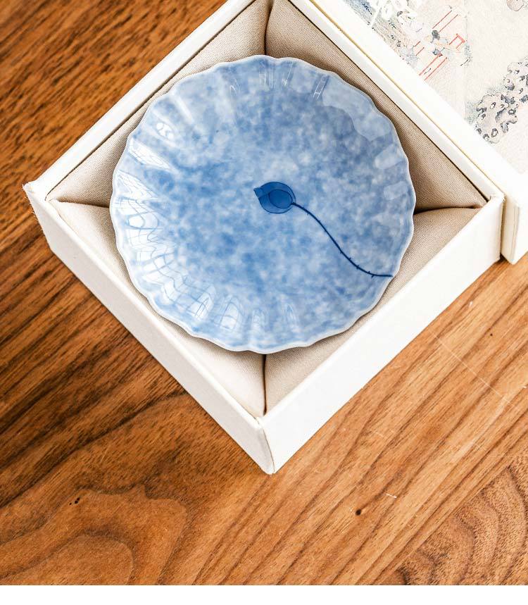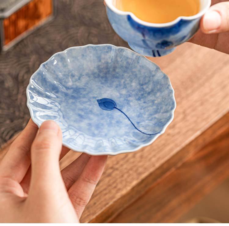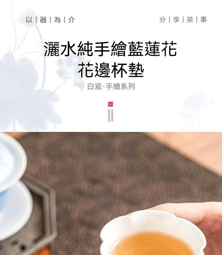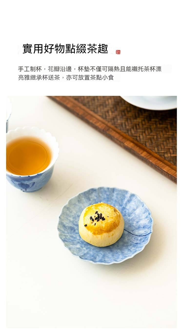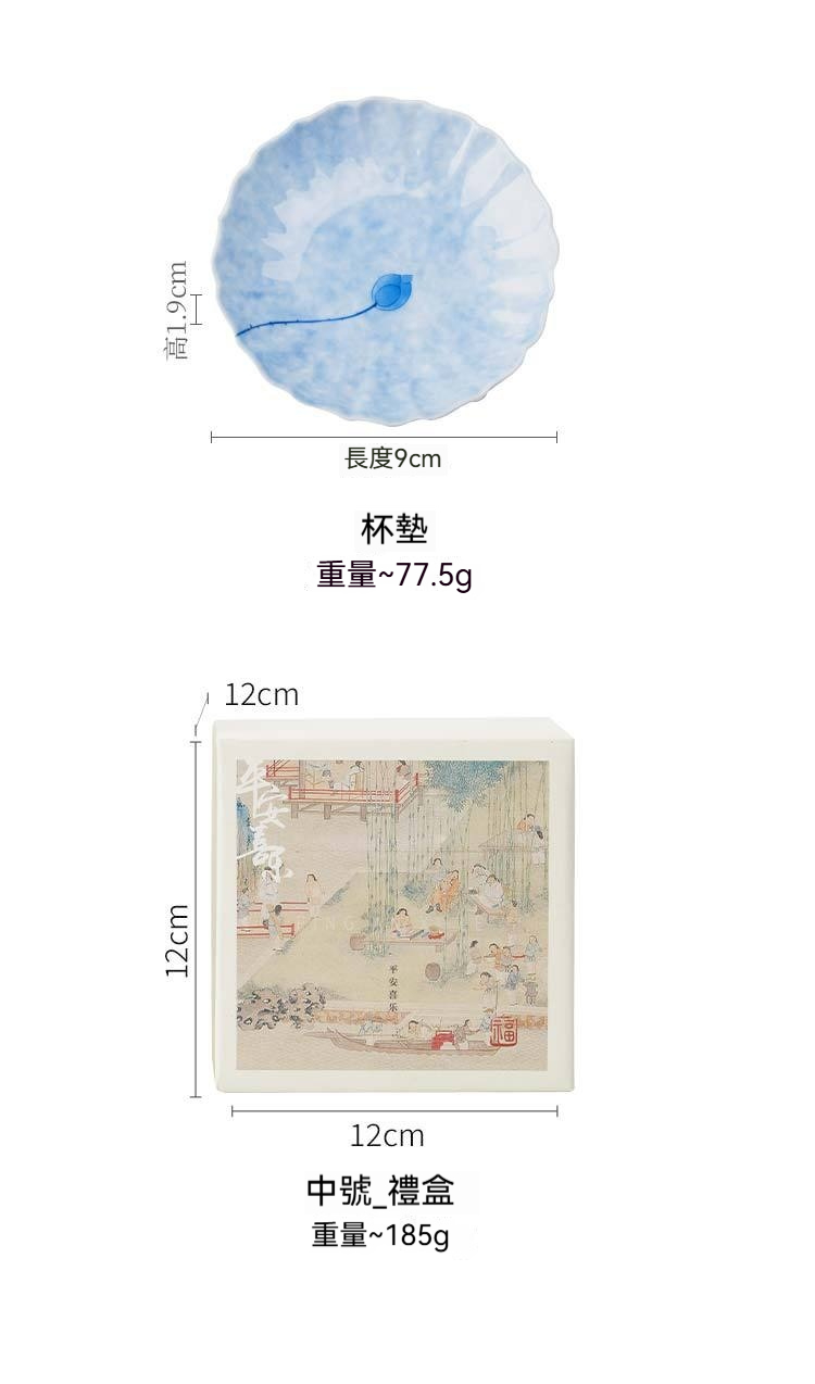 灑藍純手繪藍蓮花_花邊杯墊【禮盒裝】